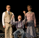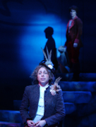 “Despite these flawed characters, this production of Side Show worked because of the strength of its performance and the entertaining spectacle of the show. From the menacing opening, with staring performers inviting us to “Come Look at the Freaks,” we know this isn’t going to be a traditionally happy musical. Director Kronenberg moves his actors skillfully through a ballet of freakishness that sets the tone for the balance of the production: We quickly understand we are entering a harsh, Brechtian, world, far removed from normal values and behavior. It’s a marvelous juxtaposition of images, because the show’s evocative period costumes (designed by Ellie Steingraeber) and wigs (created by Andrea Moriarty-Dahlberg) evoke a kind of ultra-reality that is quite distinct from the abstract emotions and events of the story.”